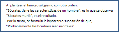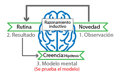 Se infiere por razonamiento inductivo cuando se desea desarrollar una teoría que explique un fenómeno desconocido. ¿Hay una receta para resolver el problema? No hay, entonces desarróllese la receta. Se prueba el modelo mental, es decir, la hipótesis.